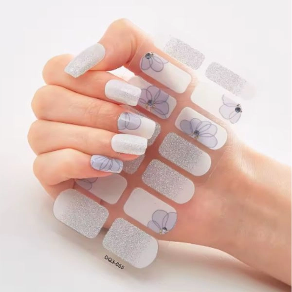 Autocolante pentru unghii, cu flori verde deschis și sclipici.