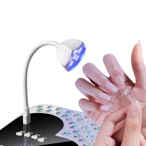 Lampă UV/LED pentru unghii, acoperită cu strasuri, afișaj LCD în formă de inimă.