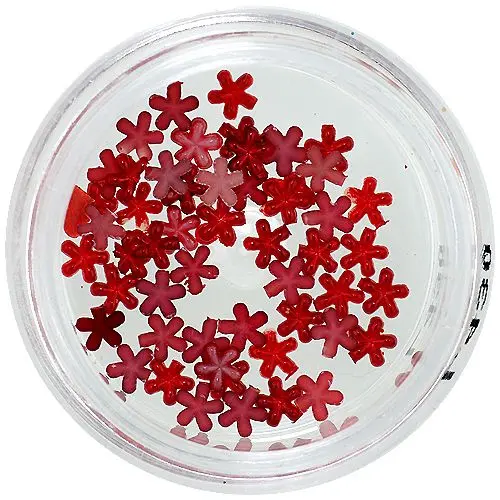 Flori roșii cu reflecții sidefate, ideale pentru decorarea unghiilor naturale, acrilice sau cu gel. Conferă unghiilor un aspect original și unic. Pentru o aplicare mai ușoară se recomandă utilizarea unui creion de unghii sau unui bețișor de lemn de portocal.