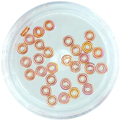 Decorații portocalii pentru unghii în formă de cercuri goale cu luciu fin sidefat. Sunt ideale pentru decorarea tuturor tipurilor de unghii.