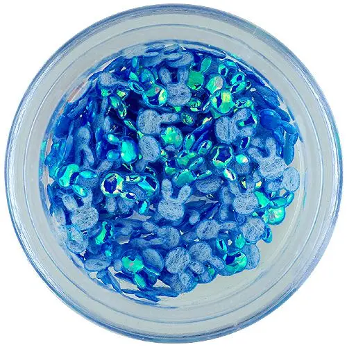 Iepure din material lucios de culoare albastră, ideal pentru decorarea unghiilor naturale, cu gel sau acrilice. Pentru o aplicare ușoară se recomandă utilizarea unui creion pentru arta unghiei.