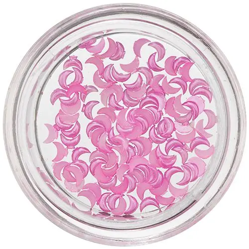 Decorațiuni nail art în formă de semilună, culoare roz cu efect perlat. Se folosesc pentru decorarea unghiilor naturale, cu gel sau acrilice, obținând astfel un look unic. Pentru o aplicare mai ușoară, este recomandată folosirea unui stilou nail art sau a unui bețigaș din lemn de portocal.